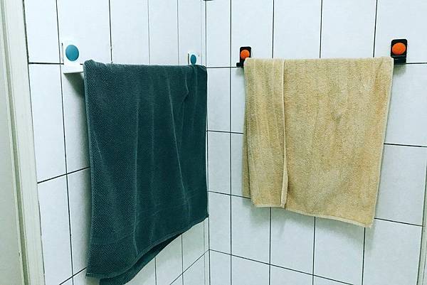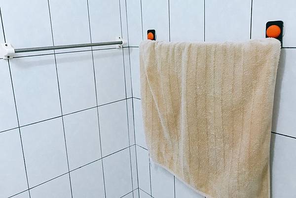 燈燈燈~毛巾這樣掛看起來整齊多了,本來都用衣架吊在衣櫃上,整間宿舍就是有種凌亂感,直接把它們掛在浴室,整個清爽多,而且桿子跟球球配色又超可愛,看了就開心!!下次再跟大家分享我買的另一個浴室置物架!