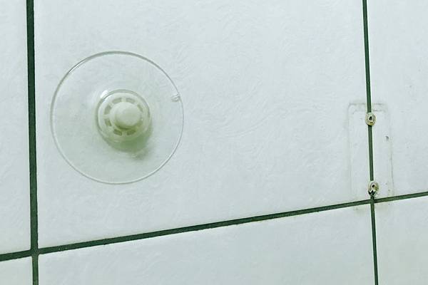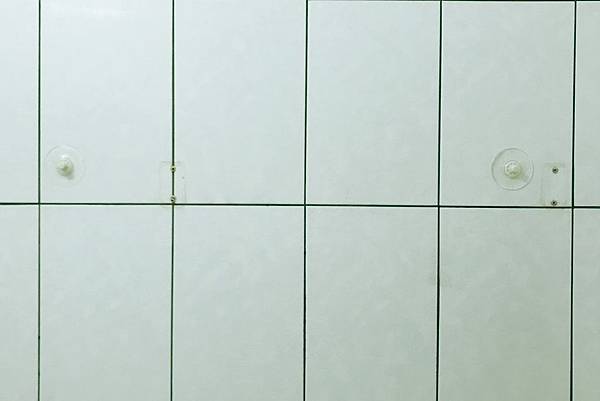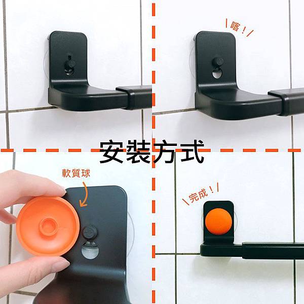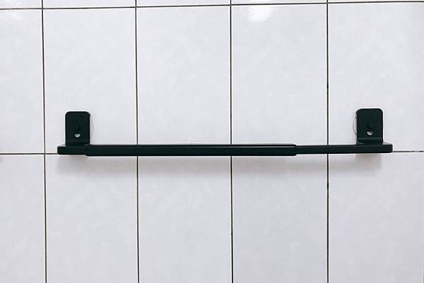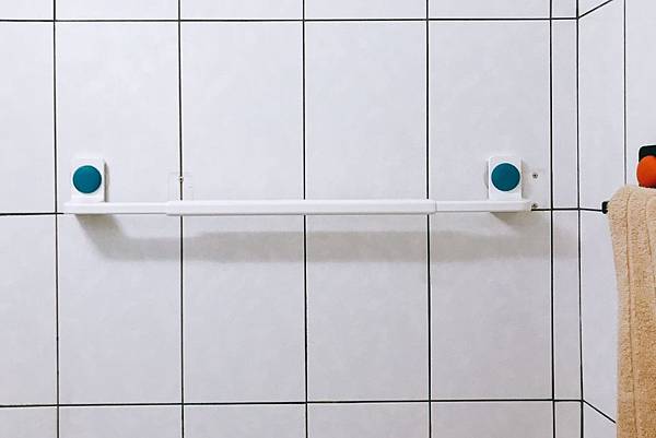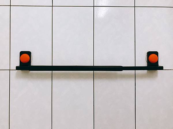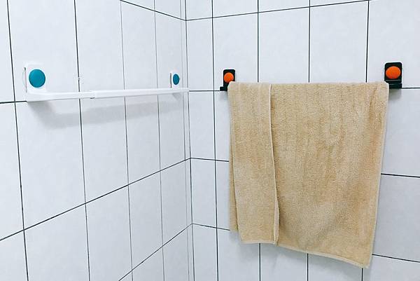 先把毛巾桿在牆上定出想要的位置(吸盤跟桿子都要一起喔才對的準)